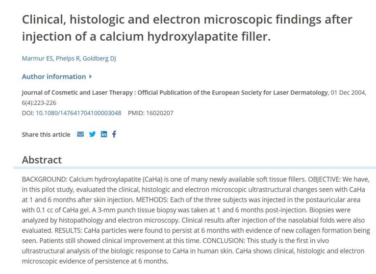 التوافق الحيوي: CaHA مادة متوافقة حيويًا، تحتوي على نواتج أيضية (Ca²⁺، PO₄³⁻) موجودة طبيعيًا في الجسم. وهذا يُظهر توافقها الحيوي العالي، ما يعني أنها جيدة التحمل من قِبل الجسم، وتنطوي على خطر منخفض من ردود الفعل التحسسية أو غيرها من الآثار الجانبية.